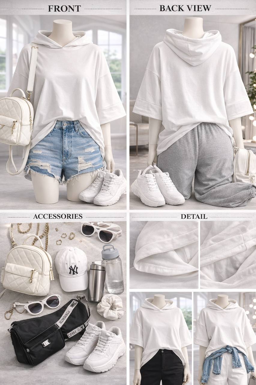 تیشرت کلاه دار باکسی کد 13602